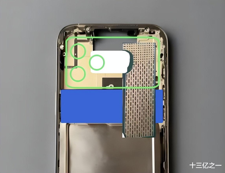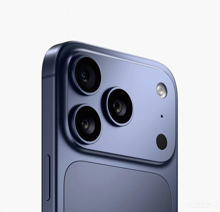 外观大改,金属机身背面镶嵌一块玻璃用于无线充电,这里有个细节,以往iPhone用的是一体冷雕玻璃,雕出一个实心玻璃台阶,用于减缓镜头凸起的视觉效果。而iPhone17Pro这个台阶是金属冲压出来的,是一个空心且加宽的台阶,相比之下增加不少内部空间。